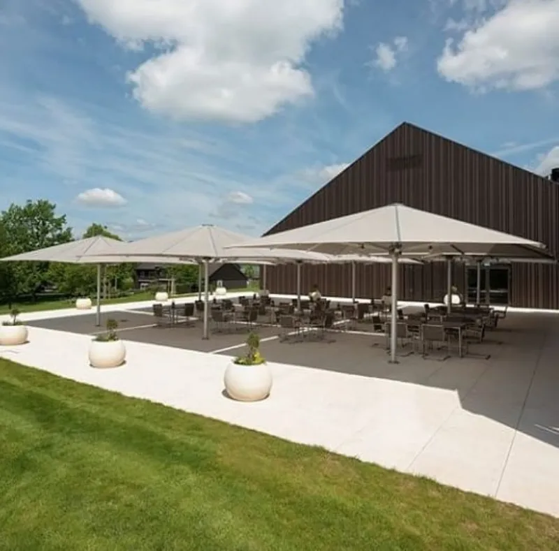 Com estruturas robustas e design elegante, os ombrelones externos da empresa são ideais para áreas externas residenciais e comerciais.
